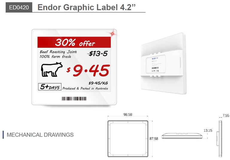 With three or four colors display , the ESLs are a Proven sales booster and essential part of the efficient and connected store.